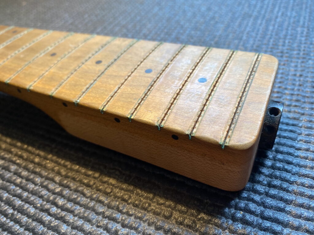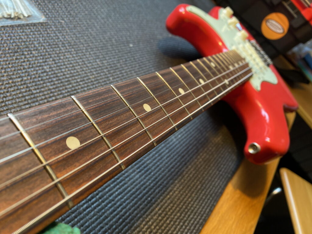 There has been all kinds of neck work going on this week in the workshop. Firstly a Fender Strat came in for a service, also needing a new set of bridge saddles and a fret level and polish.